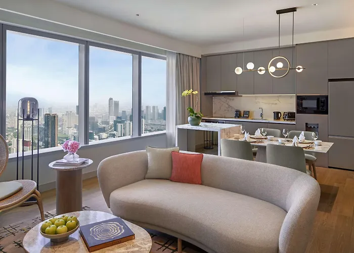 Parkroyal Serviced Suites Jakarta hotel met 180 kamers biedt een kluis, een bank en airconditioning in de kamers. Ingericht met een bank en een bureau, hebben ze ook geluiddichte ramen.